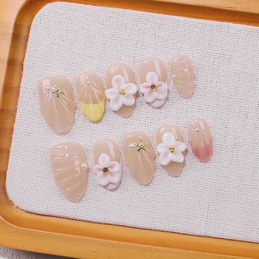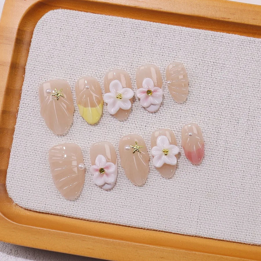 Handmade European Style Floral Carved Pure Hand Wearable Nail False Nails Transparent Sensation Almond Shaped Nail Tips