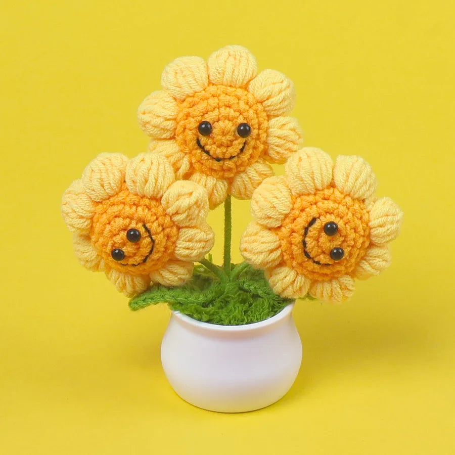 Handmade Smiling Face Sunflower Potted Plant Knitted Sunflower Decoration Teacher's Day Gift Artificial Flower Arrangement