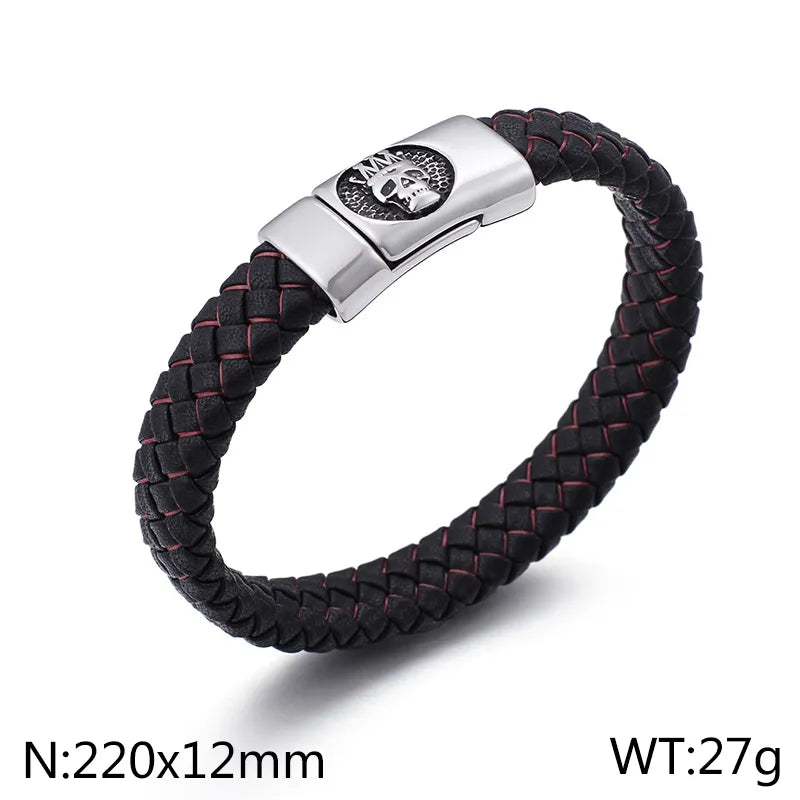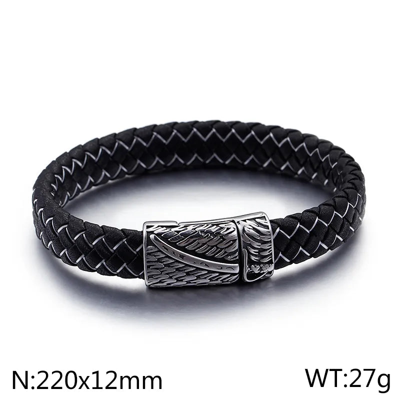 hip-hop retro color block pu leather titanium steel braid men's bangle