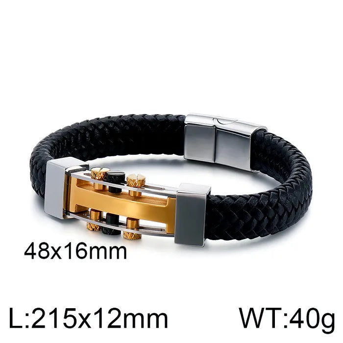 Hip-Hop Retro Color Block Pu Leather Titanium Steel Plating Men's Bangle