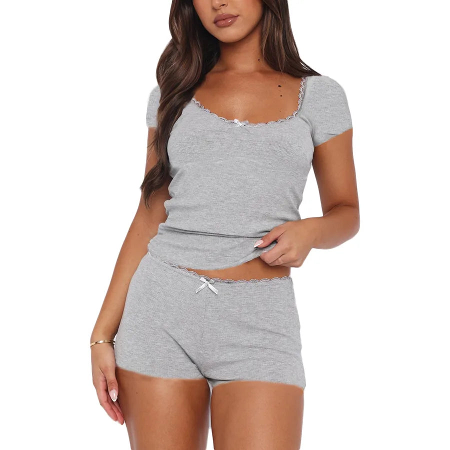 Holiday Daily Selfie Women's Casual Elegant Lady Solid Color Bow Knot Polyester Shorts Sets Pajama Sets
