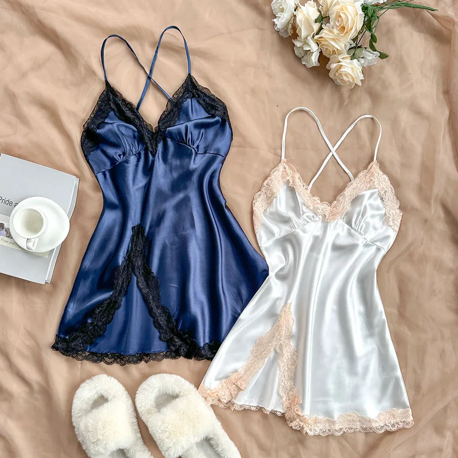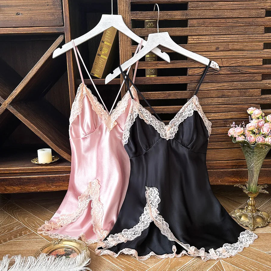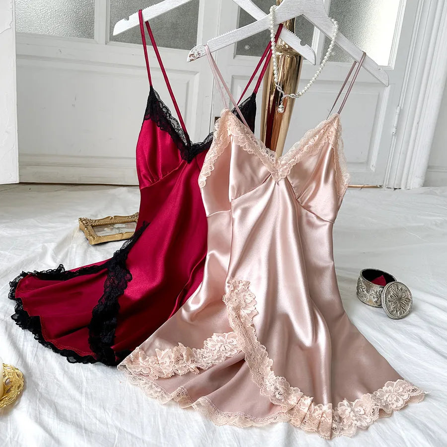 Home Elegant Sexy Color Block Lace Imitated Silk Polyester Pajama Sets