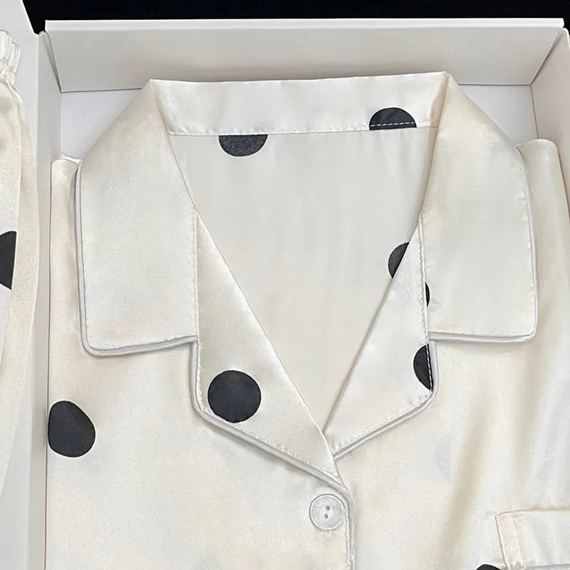 Home Women's Casual Polka Dots Satin Shorts Sets Pajama Sets