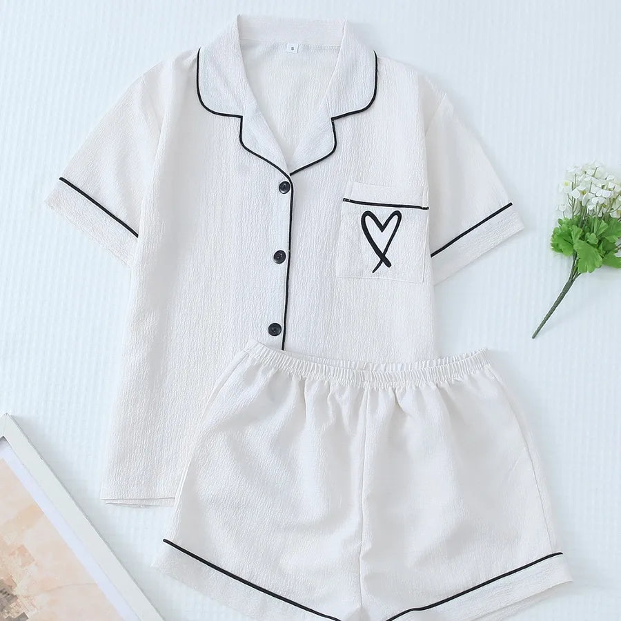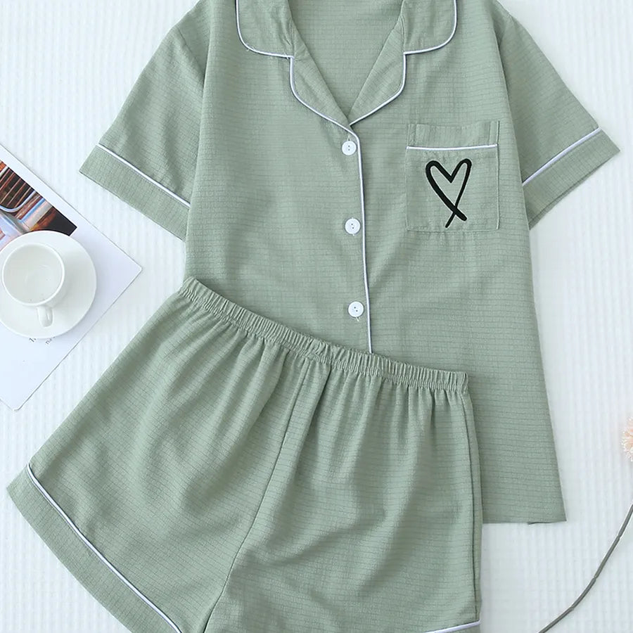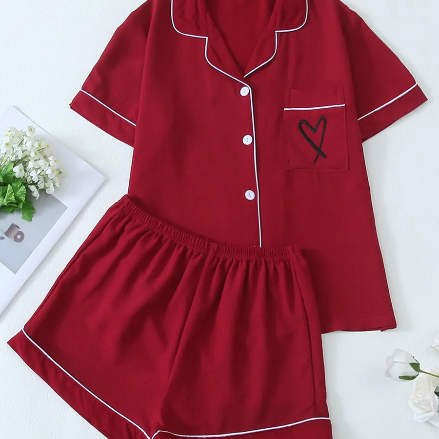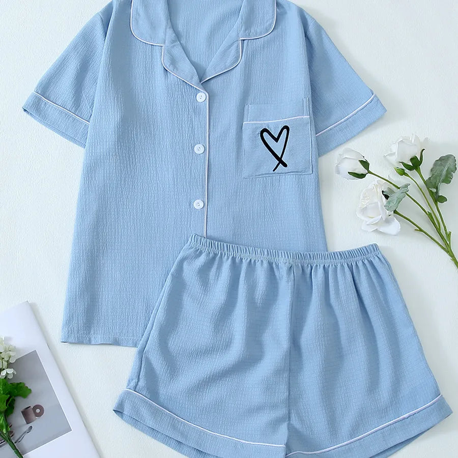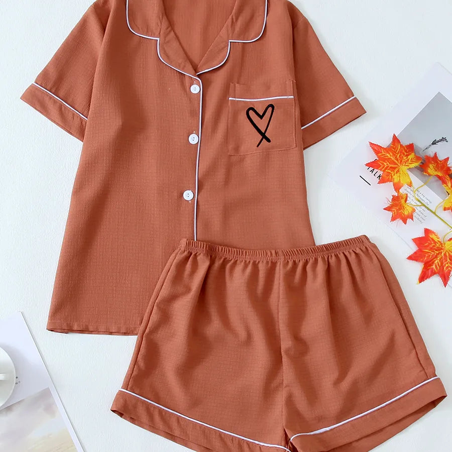 Home Women's Vacation Simple Style Heart Shape Polyester Shorts Sets Pajama Sets
