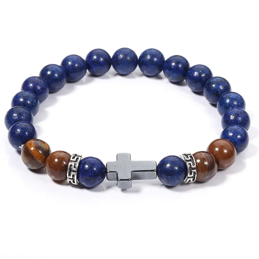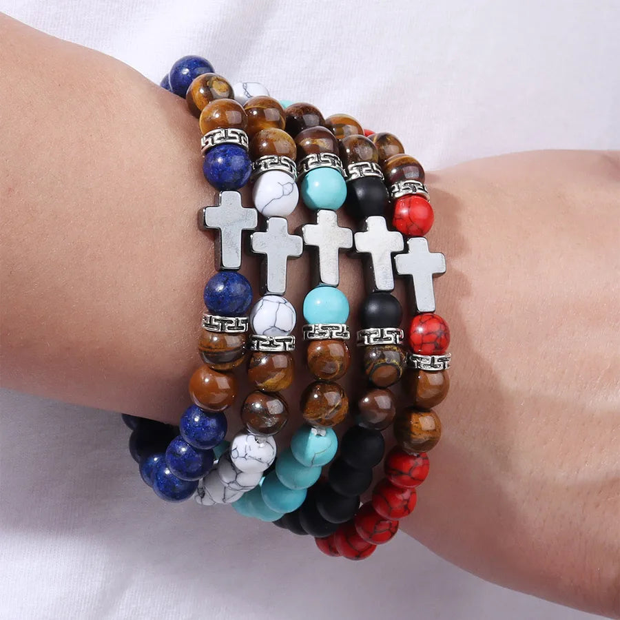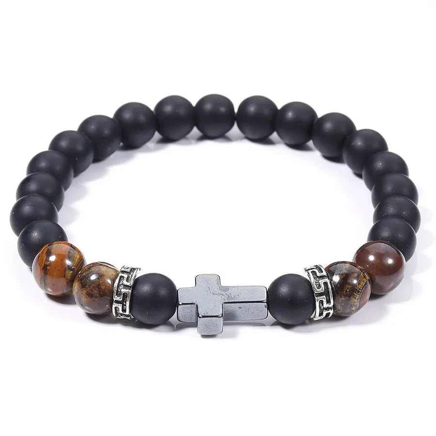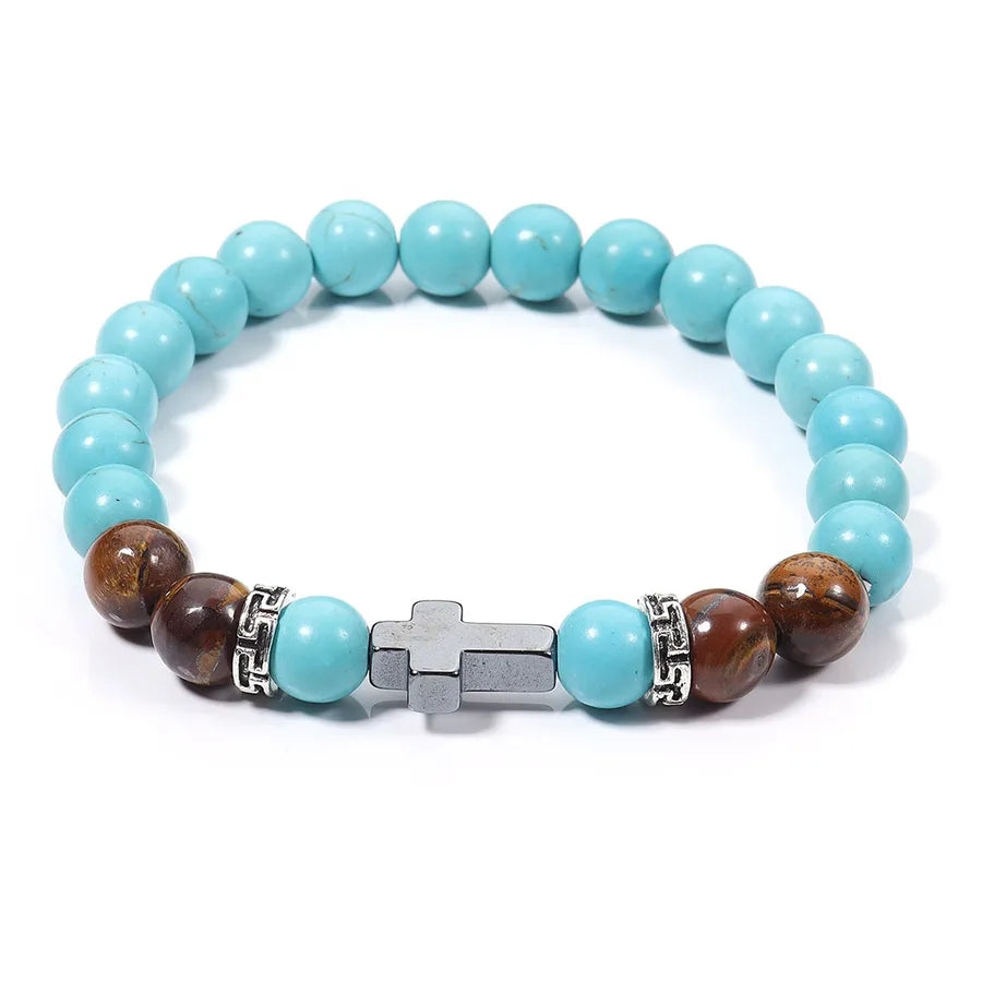 Hot-Selling Cross Beaded Bracelet Turquoise Tiger Eye Stone Men's Bracelet Yiwu Jewelry Wholesale Stall