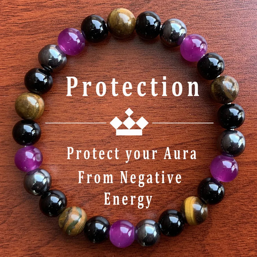 Hot-selling Multicolor Natural Stone Bracelet Amethyst Yellow Tiger Eye Black Gallstone Handmade Beaded Bracelet Energy Bracelet
