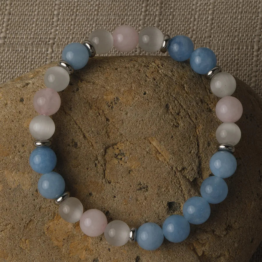 Hot Selling Natural Stone Beaded Bracelet Cat's Eye Aquamarine Pink Crystal Stacks Rope Beads Bracelet Handmade Jewelry