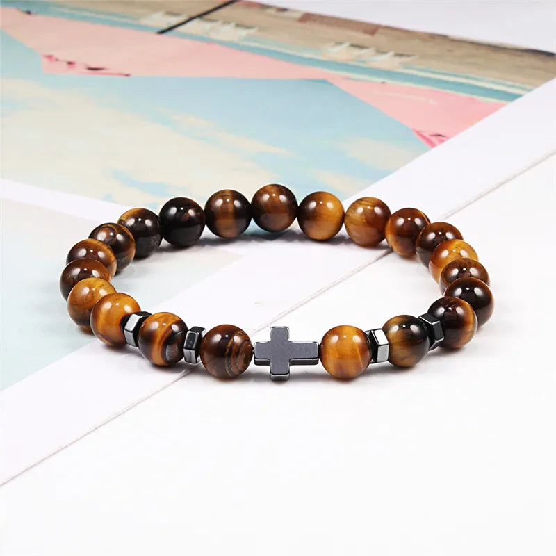 Hot Selling Natural Stone Cross Bracelet Fashion Niche Men's Bracelet Gift Yiwu Jewelry Wholesale