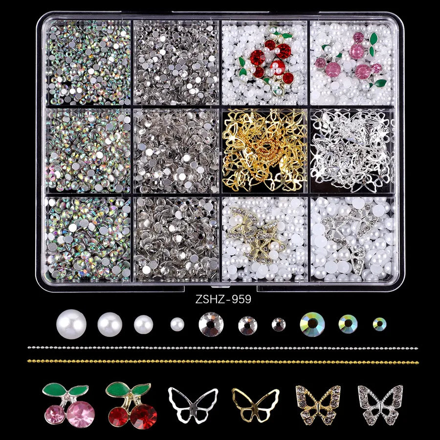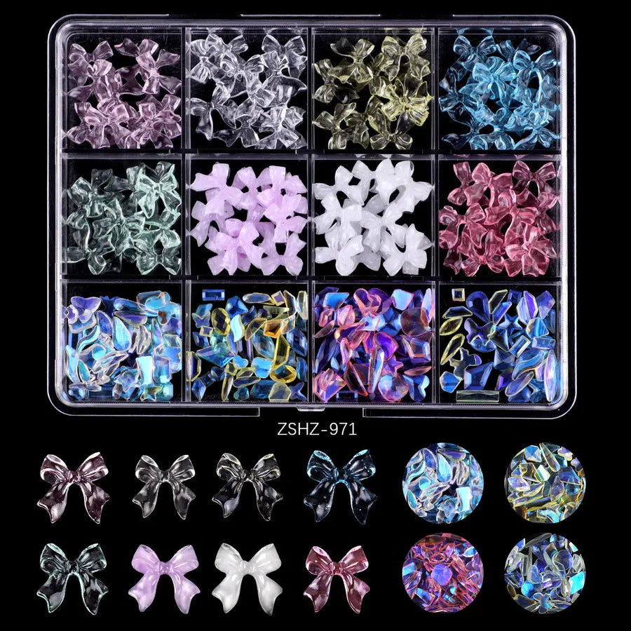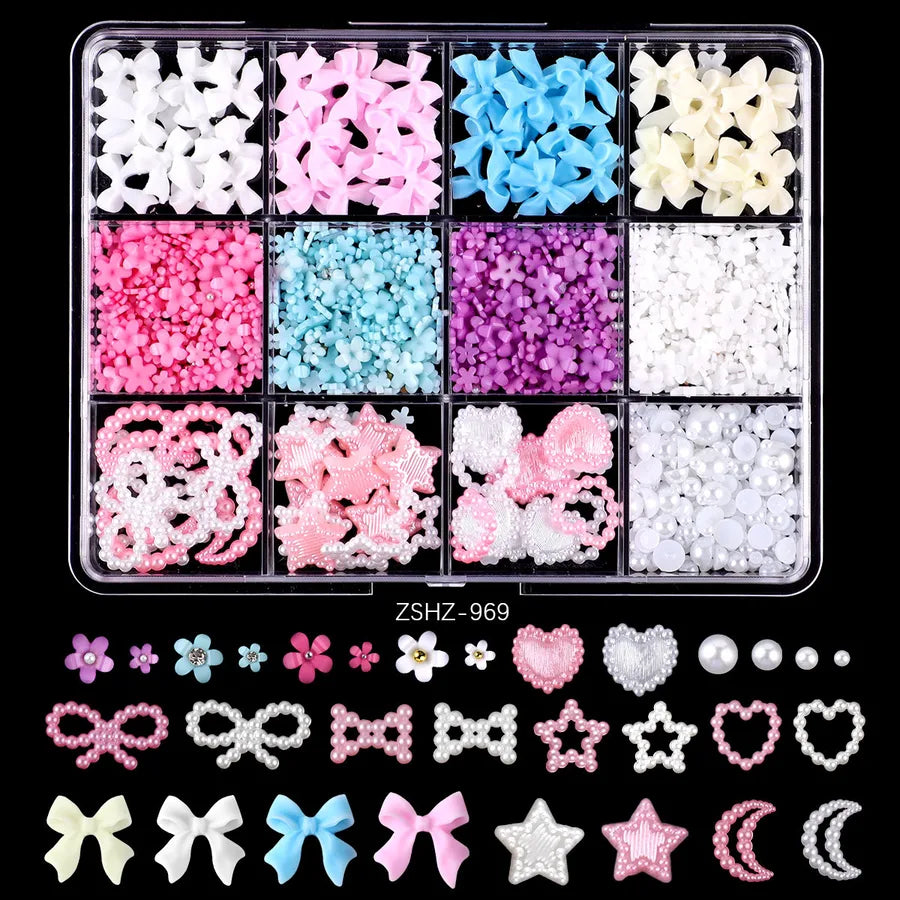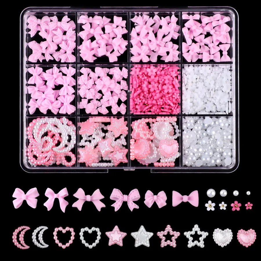 Hot Selling Ribbon Butterfly Nail Ornament Set Box Pearl Moon Heart Resin DIY Nail Accessories Wholesale