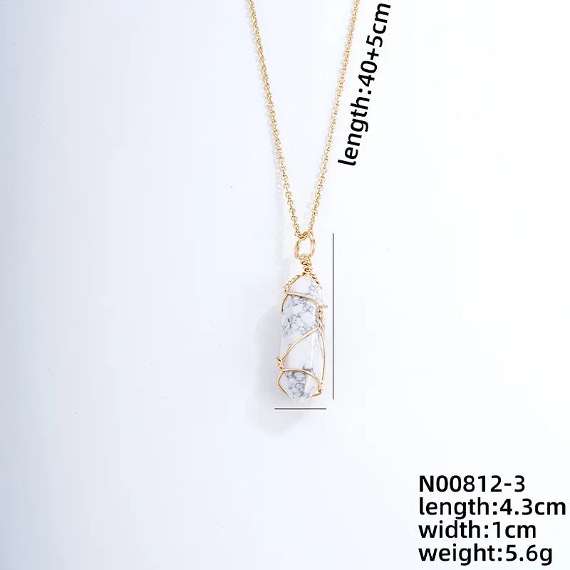 ig style handmade simple style geometric stainless steel natural stone pendant necklace