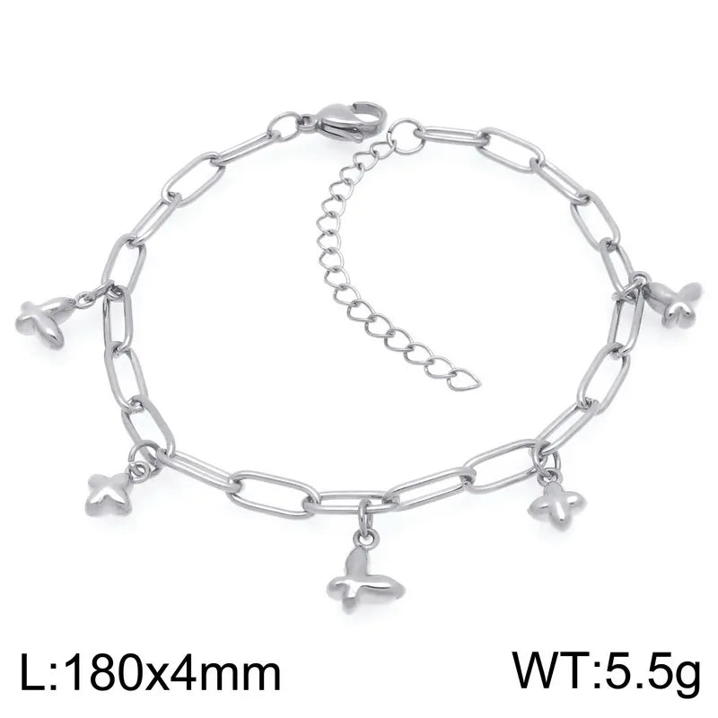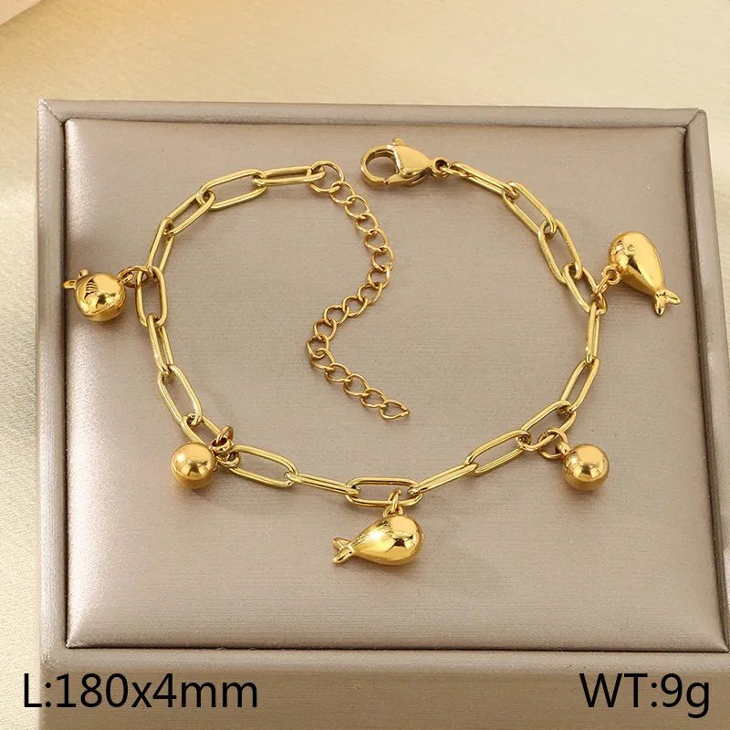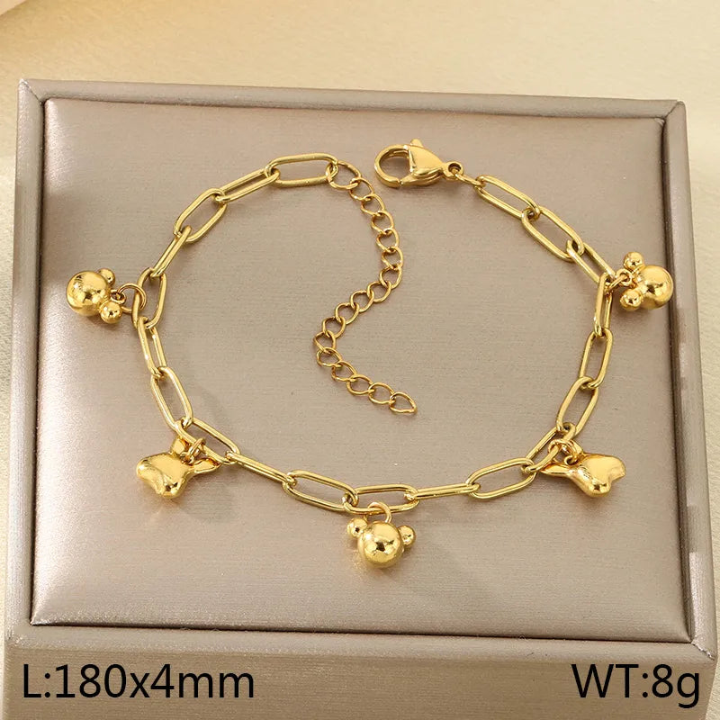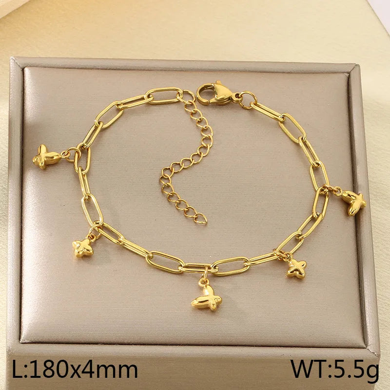 IG Style Vintage Style Cherry Ocean Butterfly 304 Stainless Steel 18K Gold Plated Paperclip Chain Bracelets In Bulk