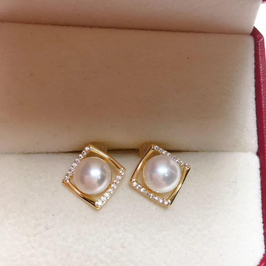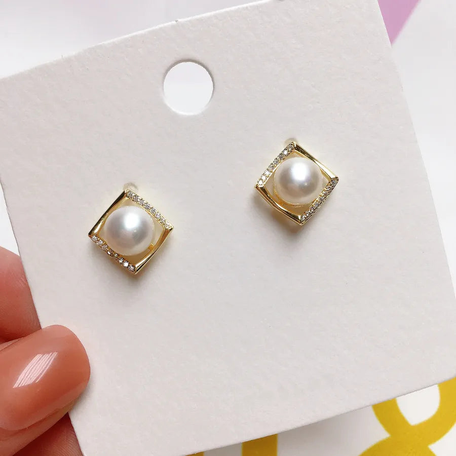 ins Net red freshwater pearl earrings female exquisite zircon temperament earrings 18K gold New Natural