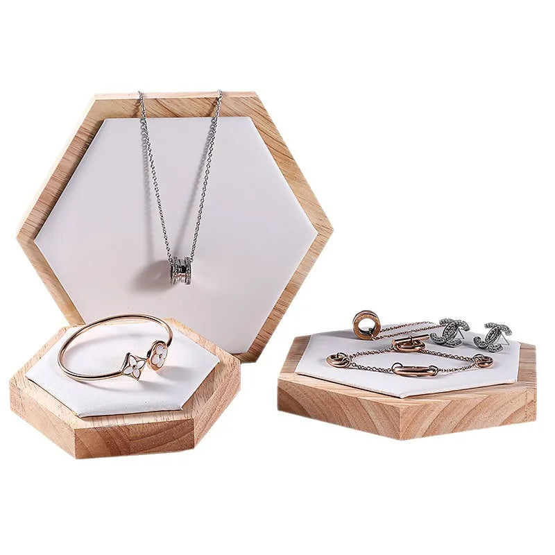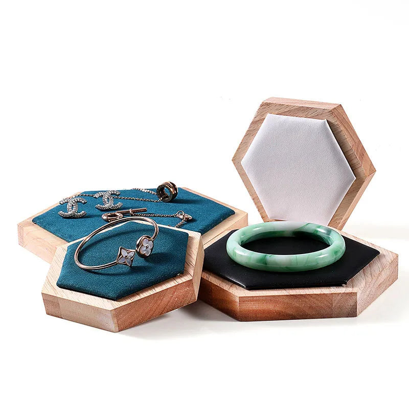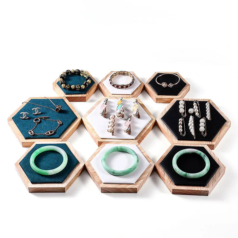 Jewelry Display Stand Earring Bracelet Necklace Ring Holder Wooden Hexagonal Structure Academic Style Crafted From Solid Wood