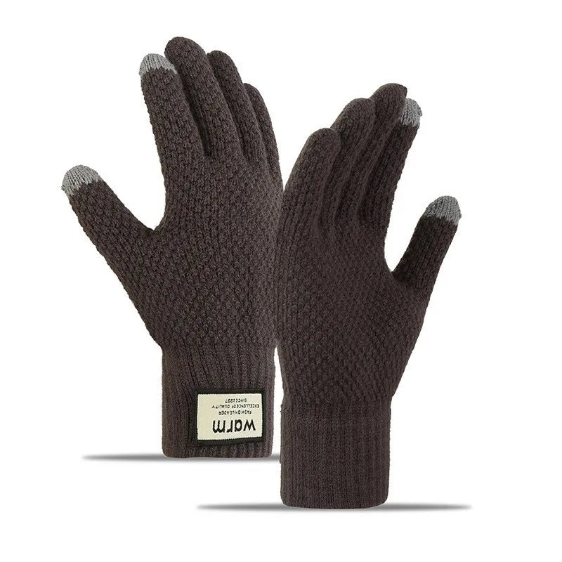Knitted wool gloves non-slip five-finger plus velvet finger touch screen gloves for men and women autumn and winter Korean version of thick warm cycling gloves