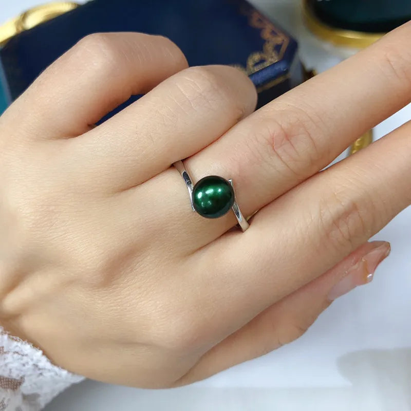 lady simple style solid color copper plating inlay freshwater pearl rings