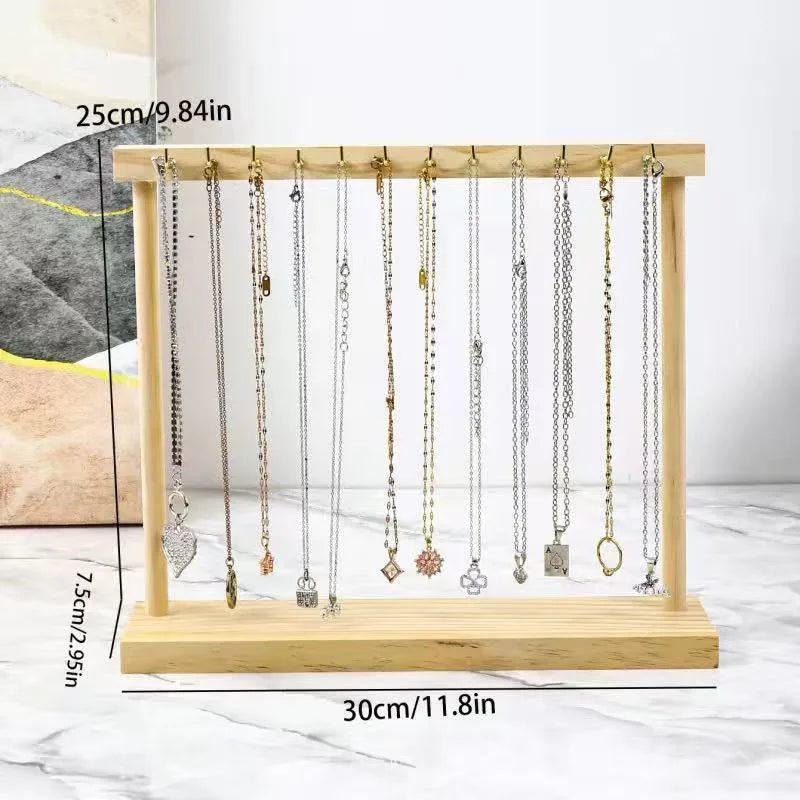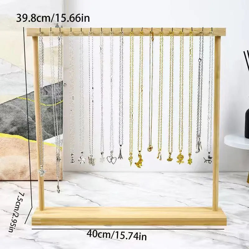 Large Size Solid Wood Necklace Display Stand Sweater Chain Hook Bracelet Jewelry Hanging Rack Elegant Novelty Design Wood Jewelry Holder