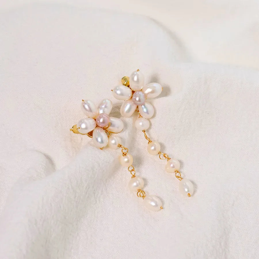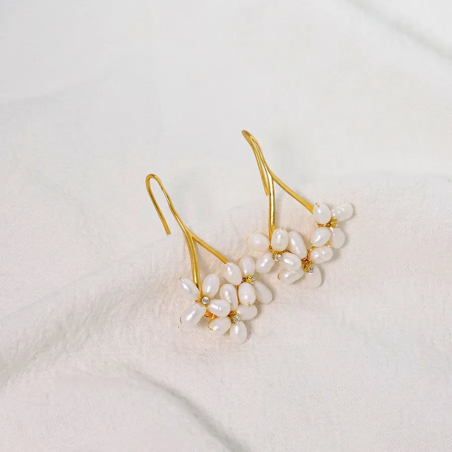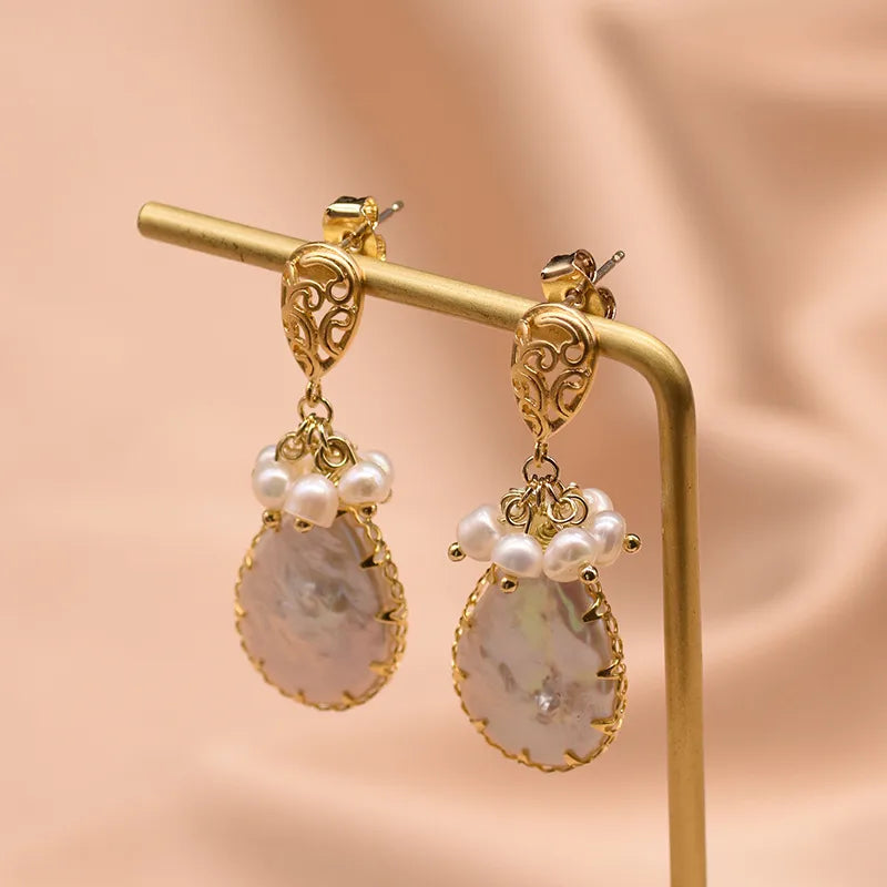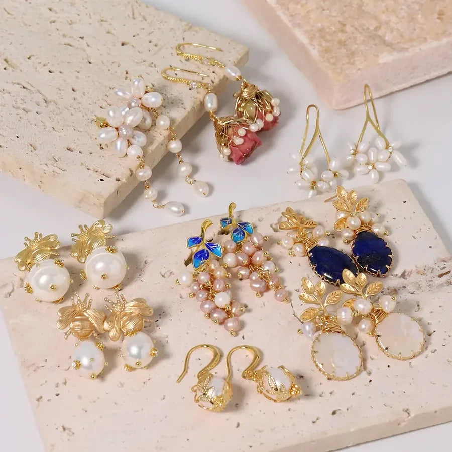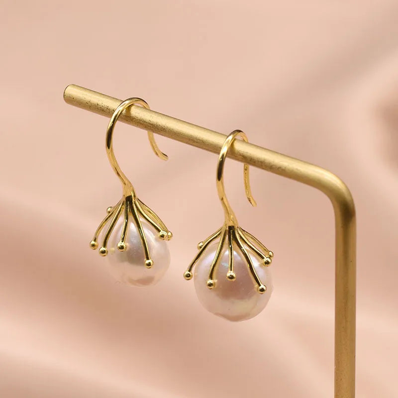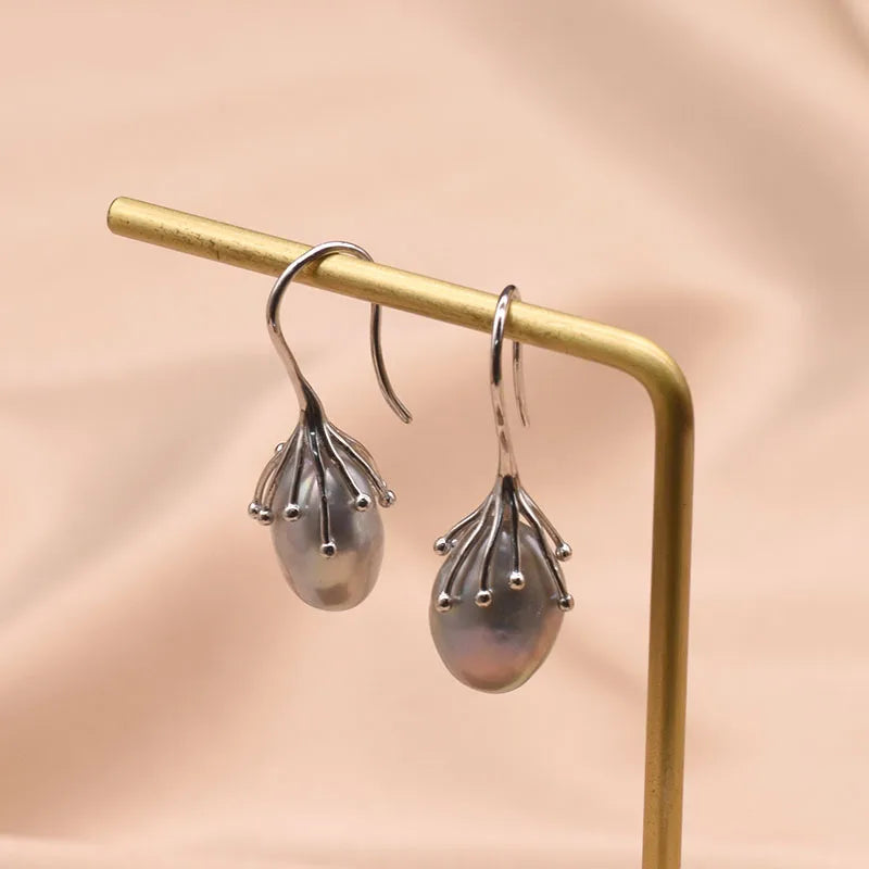 Live broadcast natural pearl earrings high-grade earrings s925 silver needle women's design natural freshwater real pearl