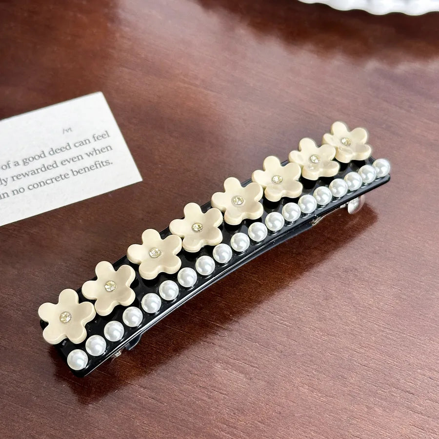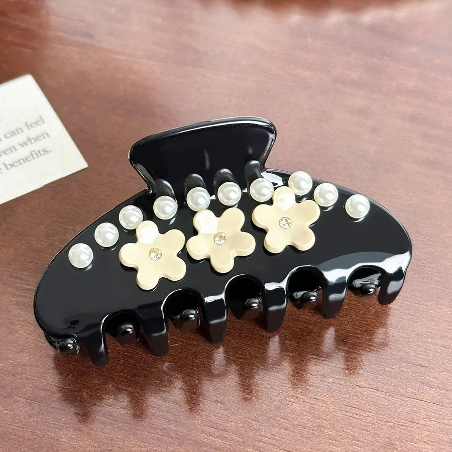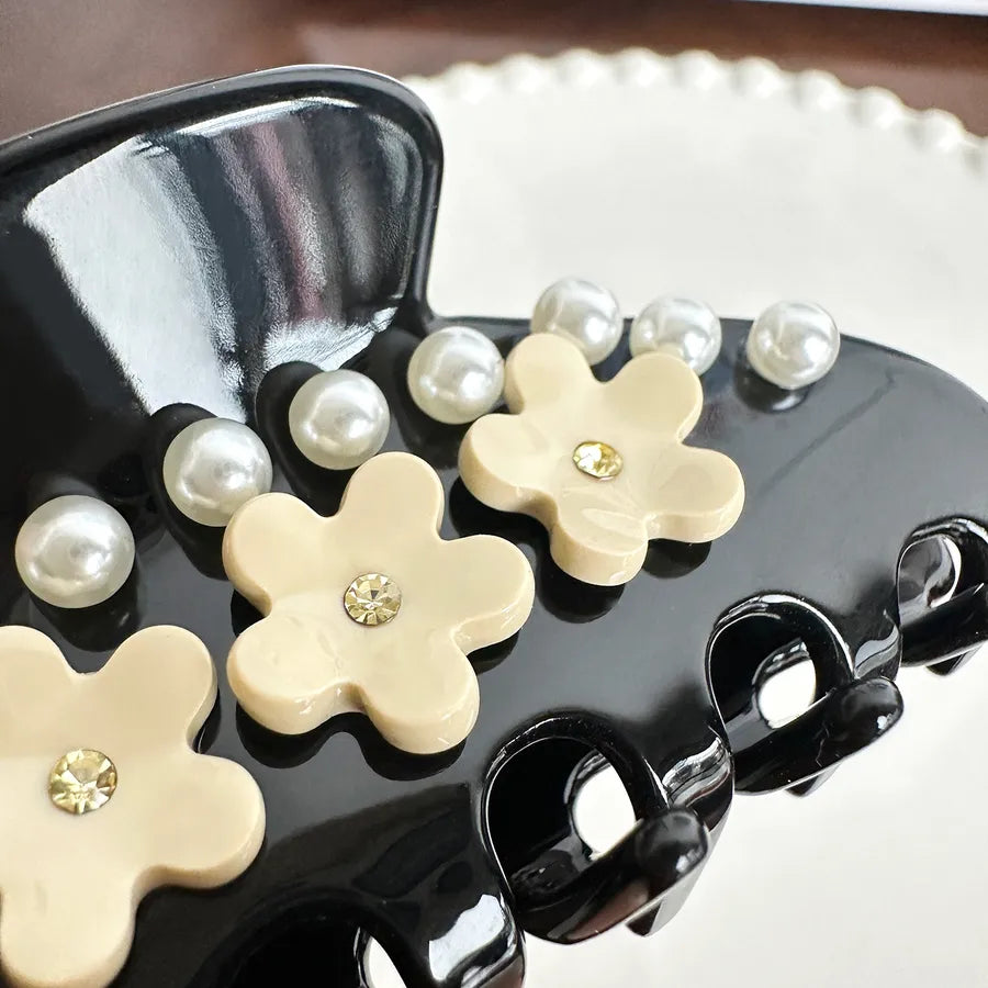 Medium Size Acetate Hair Clip Floral Embellished Shark Clamp Versatile Side Hair Clip Stylish Hair Accessory For Women