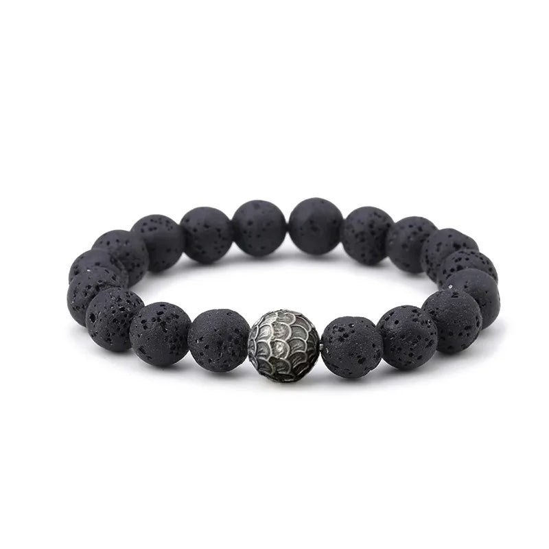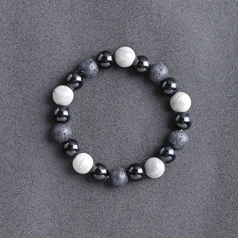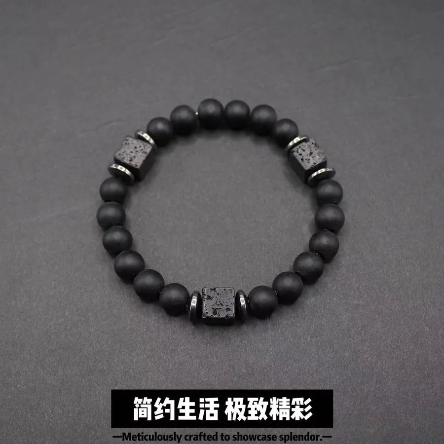 Men's Black Obsidian Volcanic Rock Beads Bracelet Geometric Pattern Simple Style Double Ring Ball Weave Gift For Boyfriend