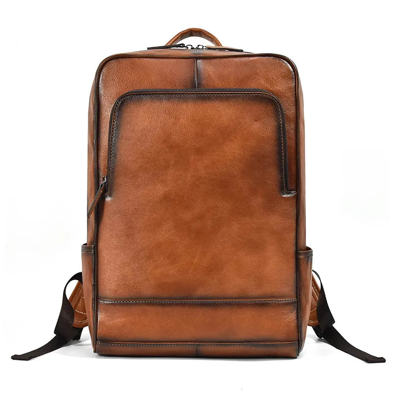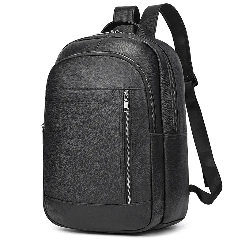 Men's Genuine Leather Backpack Double Shoulder 15 Inch School Bag Commuting Traveling Bag Pure Color Fashion Element