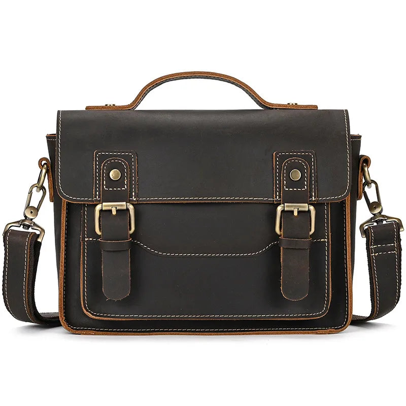 Men's Retro Mad Horse Leather Single Shoulder Bag Fashion New Genuine Leather Messenger Square Handbag Pure Color Durability