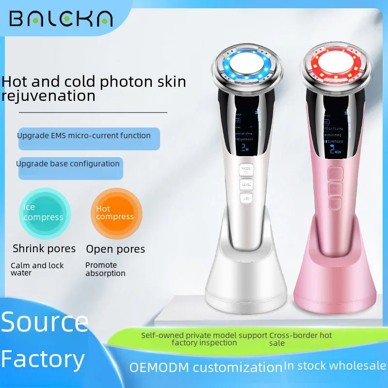 Micro-current beauty instrument EMS photon skin rejuvenation instrument firming lifting facial massager cold and hot color light guide instrument