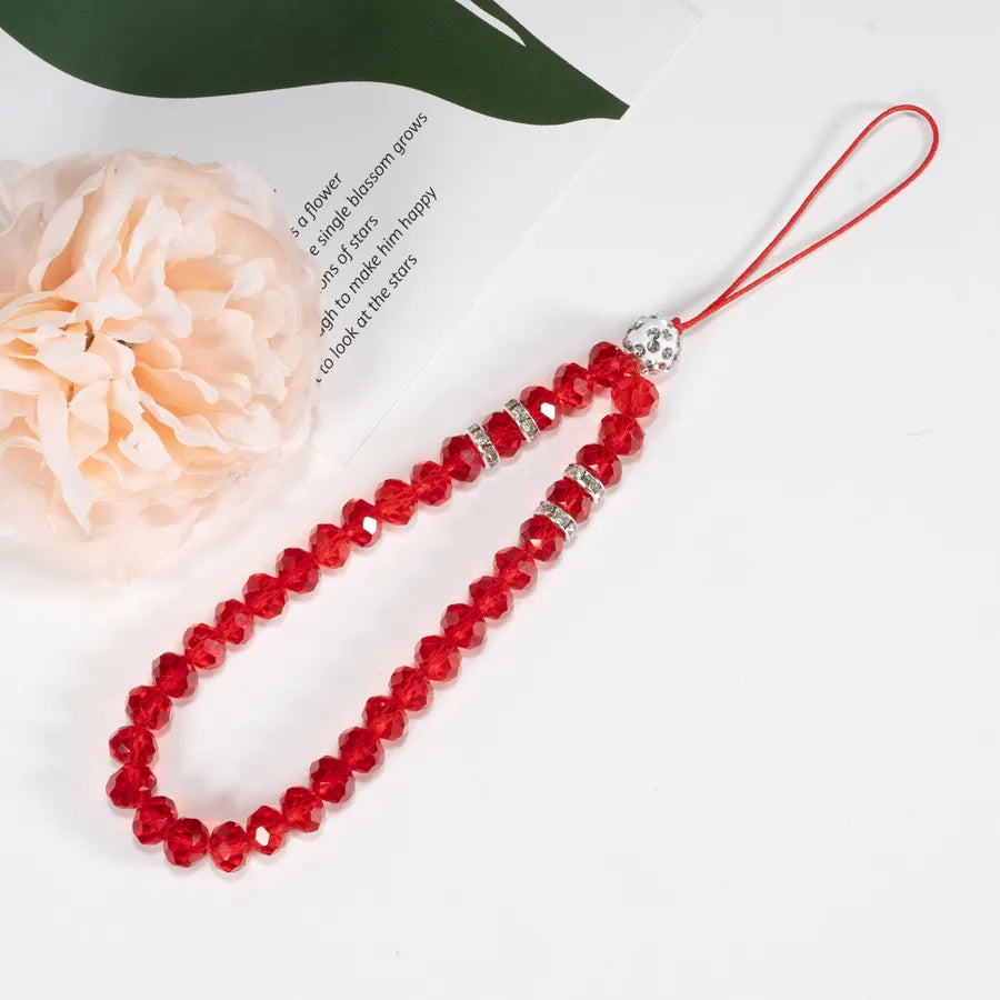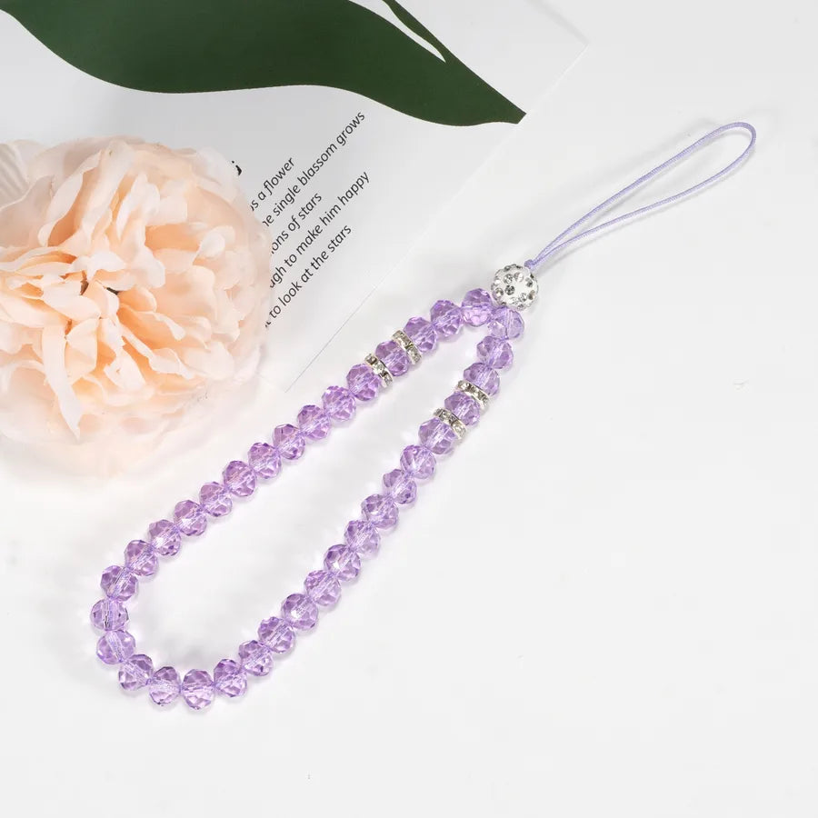 mobile phone crystal chain lanyard crystal flat beads glass beads acrylic neck anti-fall chain wholesale