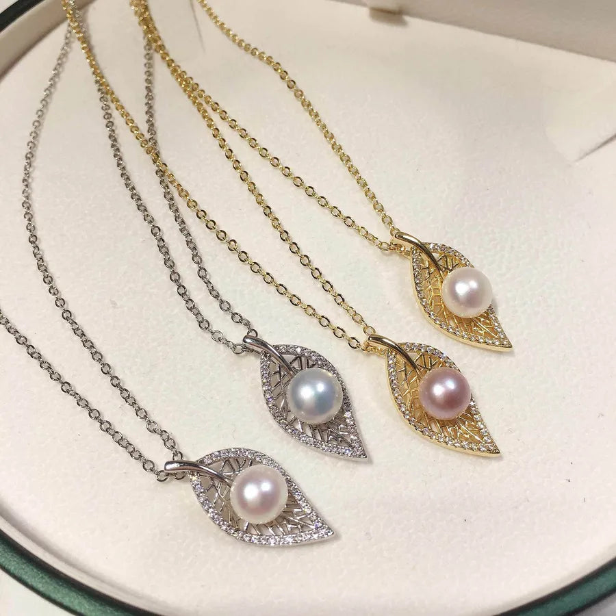Natural freshwater pearl necklace copper plated gold leaf pearl pendant new boutique craft gift live wholesale