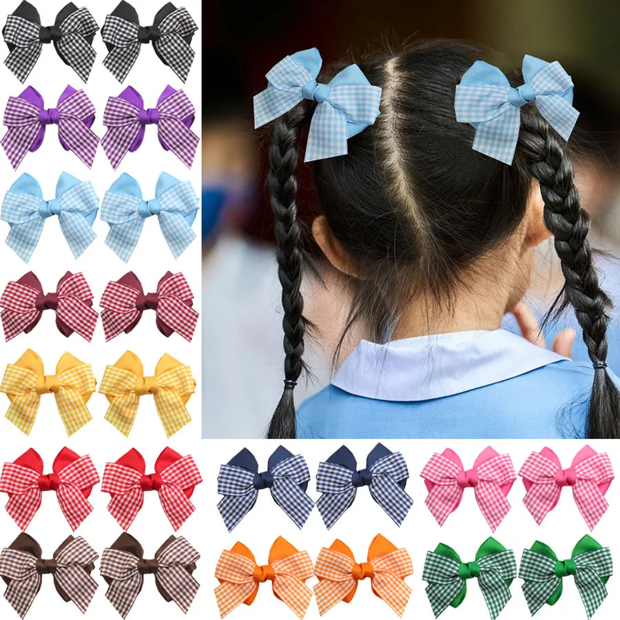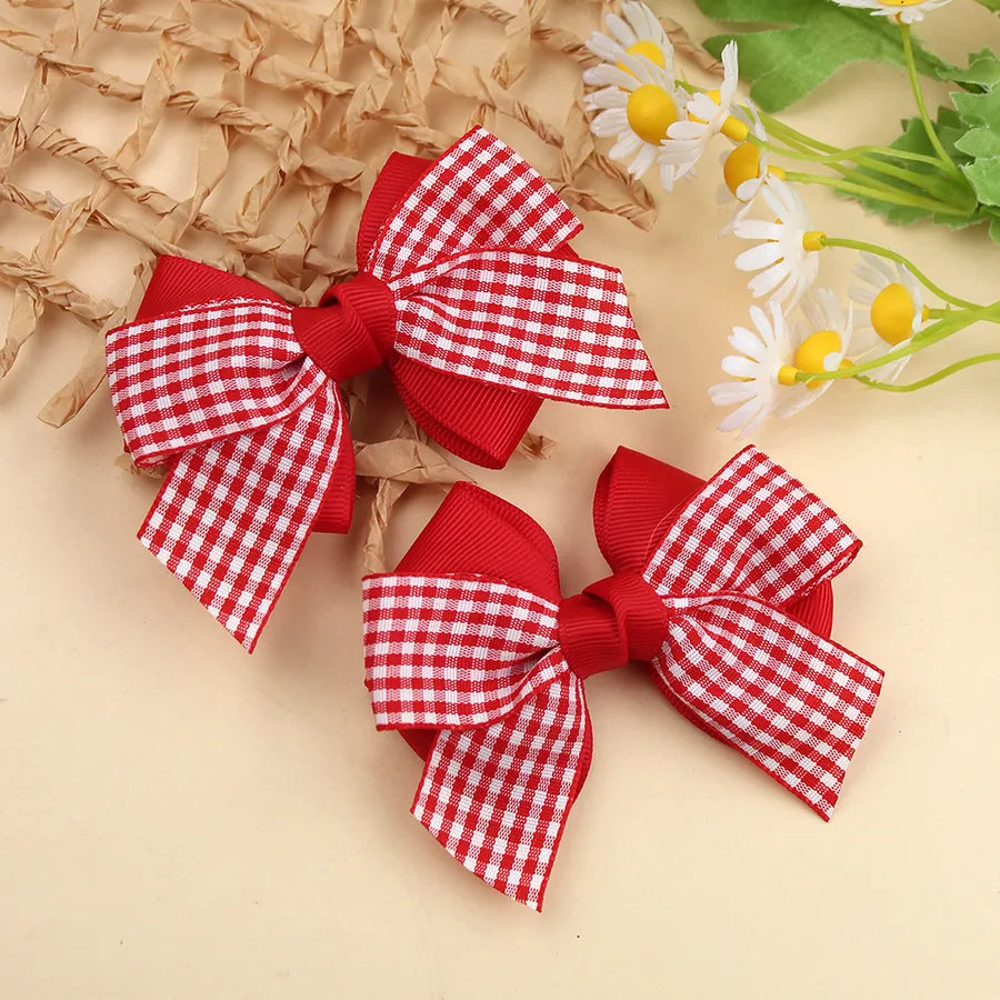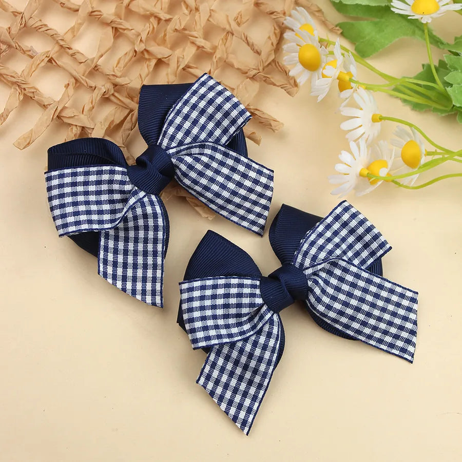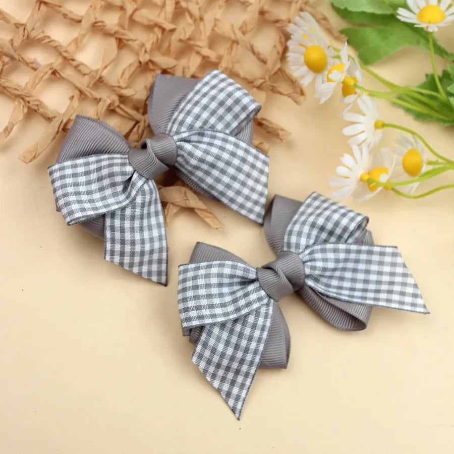New British Academy Style Ins Pair of Fresh Plaid Bow Hairpin Handmade Hair for Girls