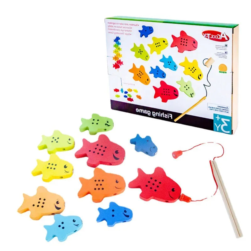 New Cloud Wood Industry Wooden Magnetic Number Teaching Fishing Game Toy Parent-Child Double Rod Educational Bead Stringing