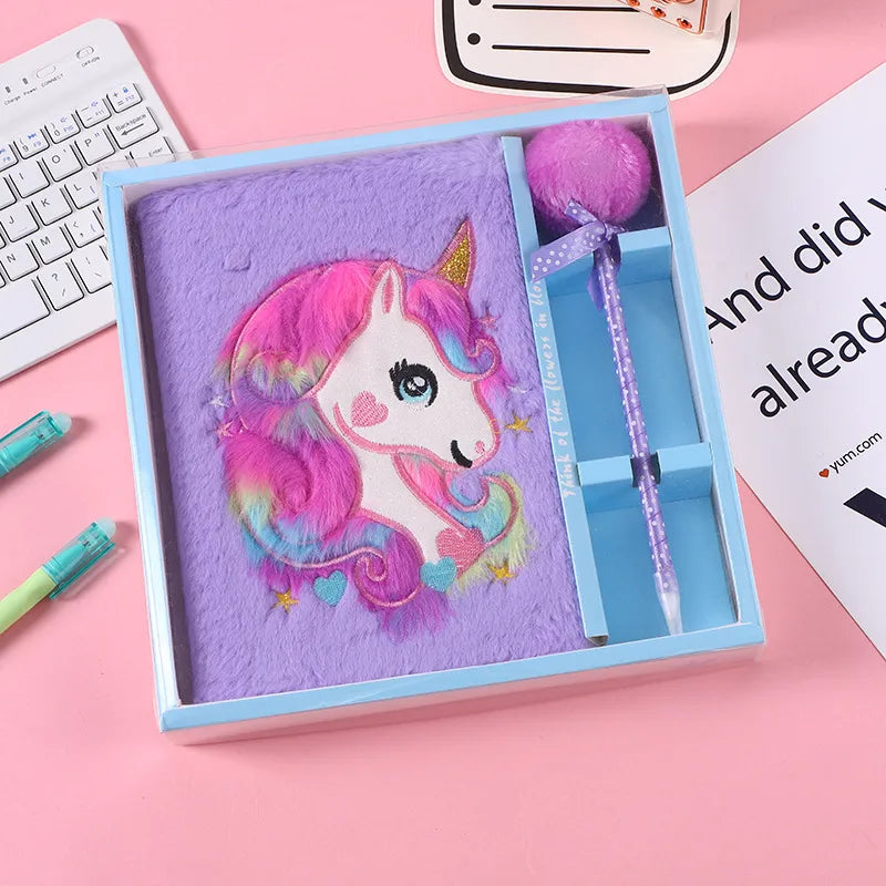 New Colorful Plush Notebook Cartoon Dreamy Girl Student Diary Notebook Light Pink And Purple Wooden Pulp Material