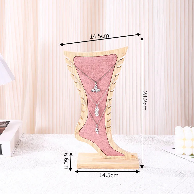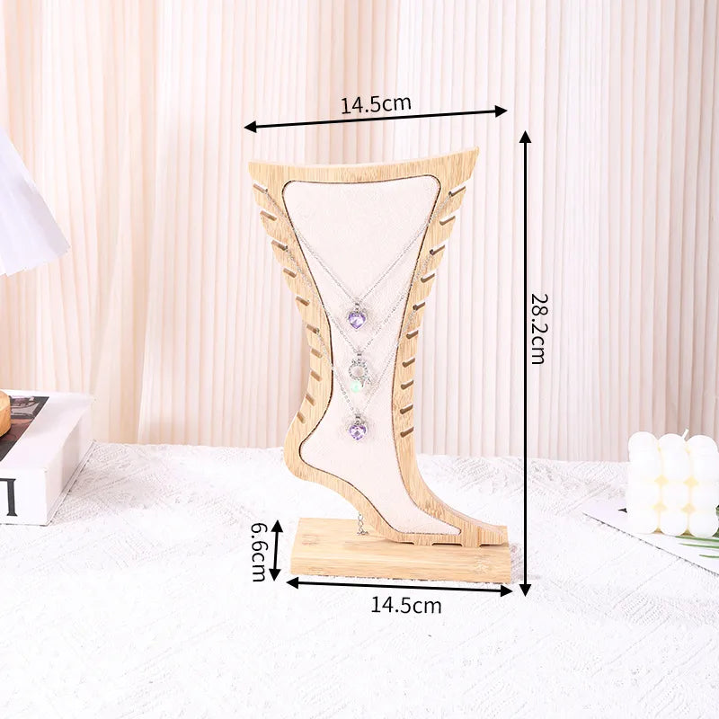 New Creative Bamboo Wooden Necklace Jewelry Display Stand Pendant Accessory Holder Artistic Style Integrated Design Foot Pattern