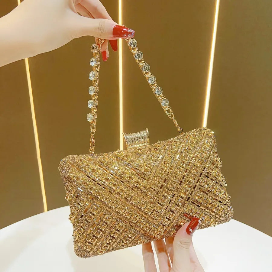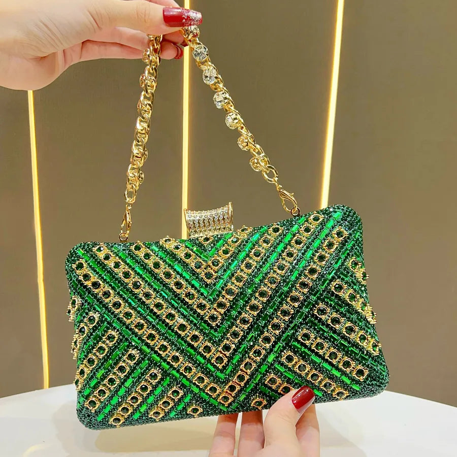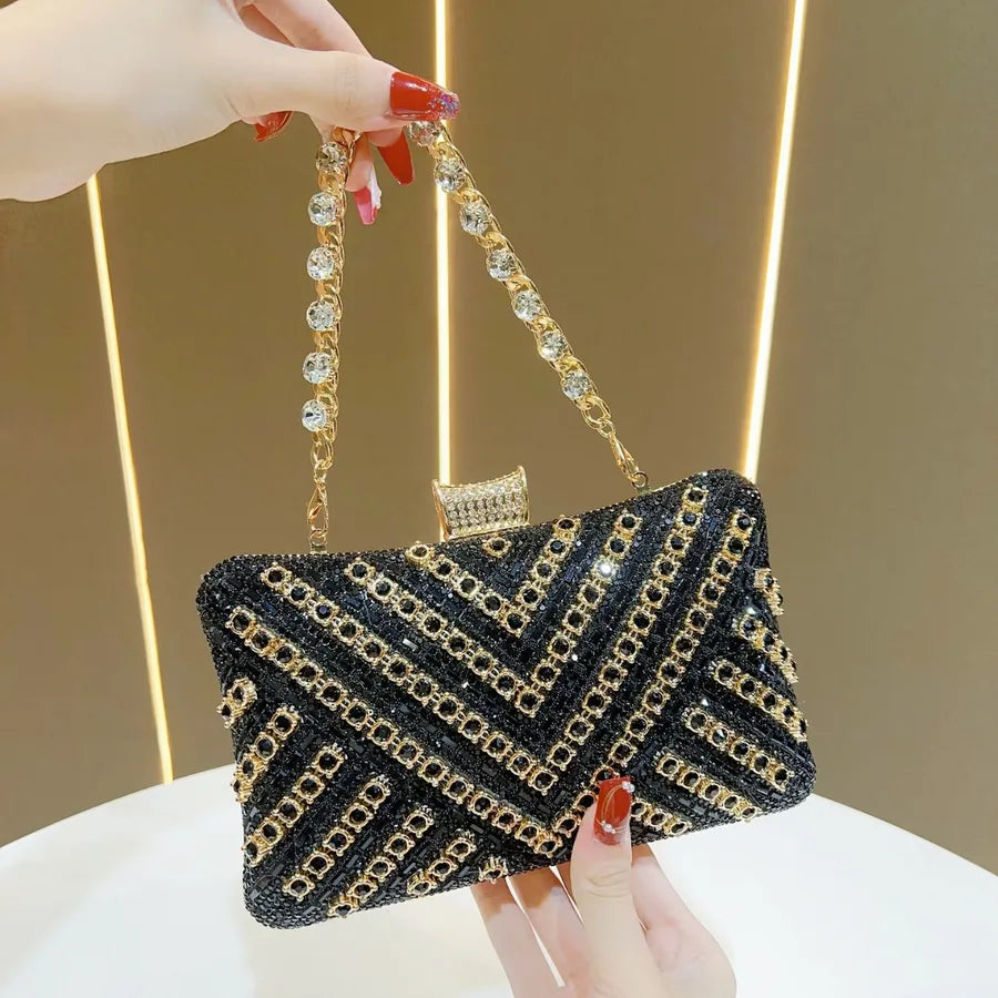 New Evening Gown Diamond Clutch Bag Single Shoulder Crossbody Women's Handbag Pillow Shape Polyester Striped Pattern