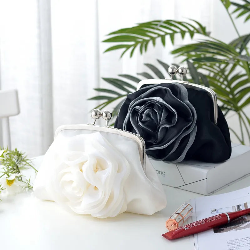 New Fresh Rose Flower Banquet Bag Satchel Crossbody Qipao Bag New Year Handbag Square Silk Surface Chain Bag Sweet Style