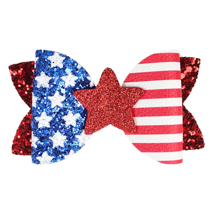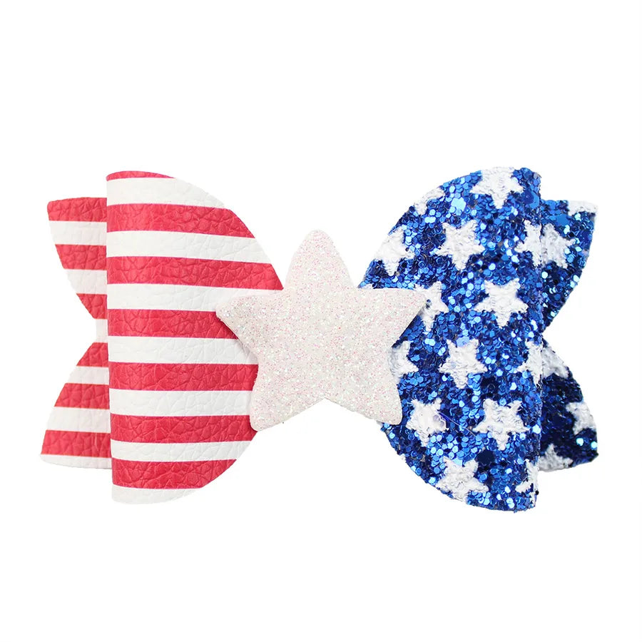 New July 4 US National Day Shining Stars Bow Pair Clip Independence Day Patriotic Girl Hair Accessories