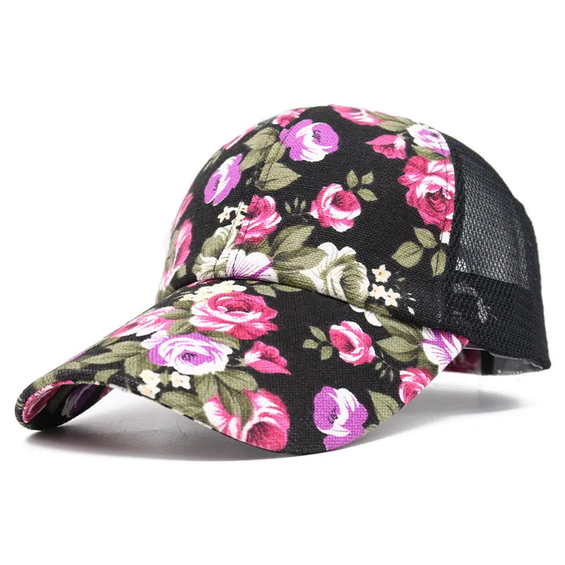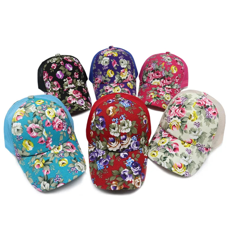 new ladies printed net cap summer fashion breathable flower cap spot wholesale