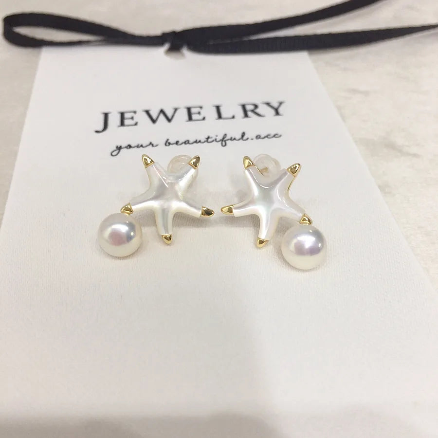 New natural freshwater pearl earrings female seashell fritillary delicate starfish pearl earrings source manufacturers wholesale
