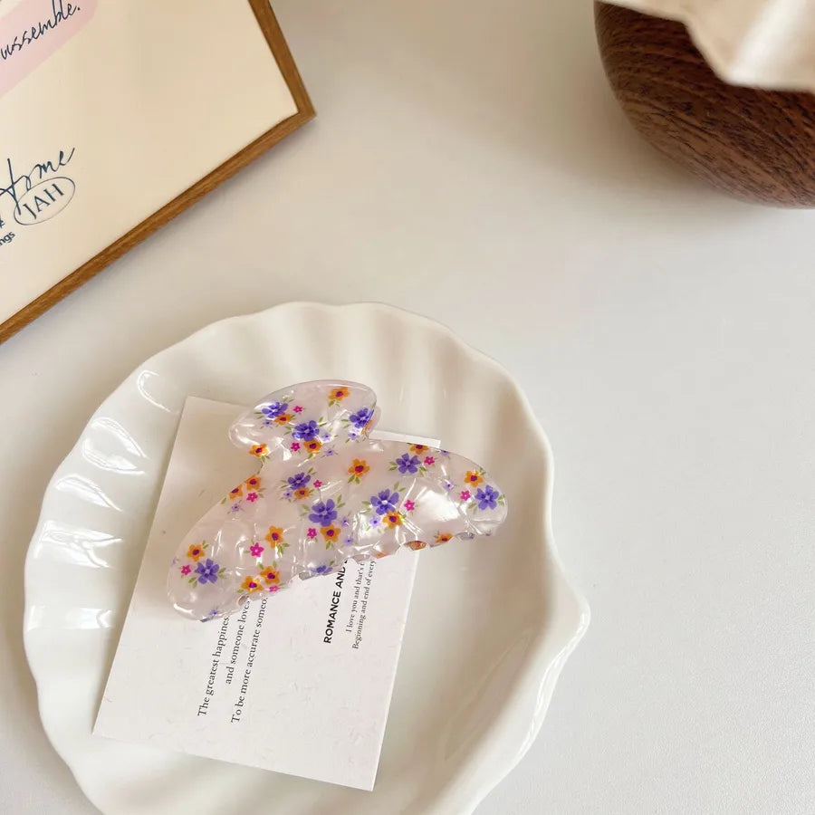 New Printing Acrylic Jaw Clip Vintage Floral Beautiful Temperament Shark Clip Fashion Broken Hair Temperament Elegant Hair Claw
