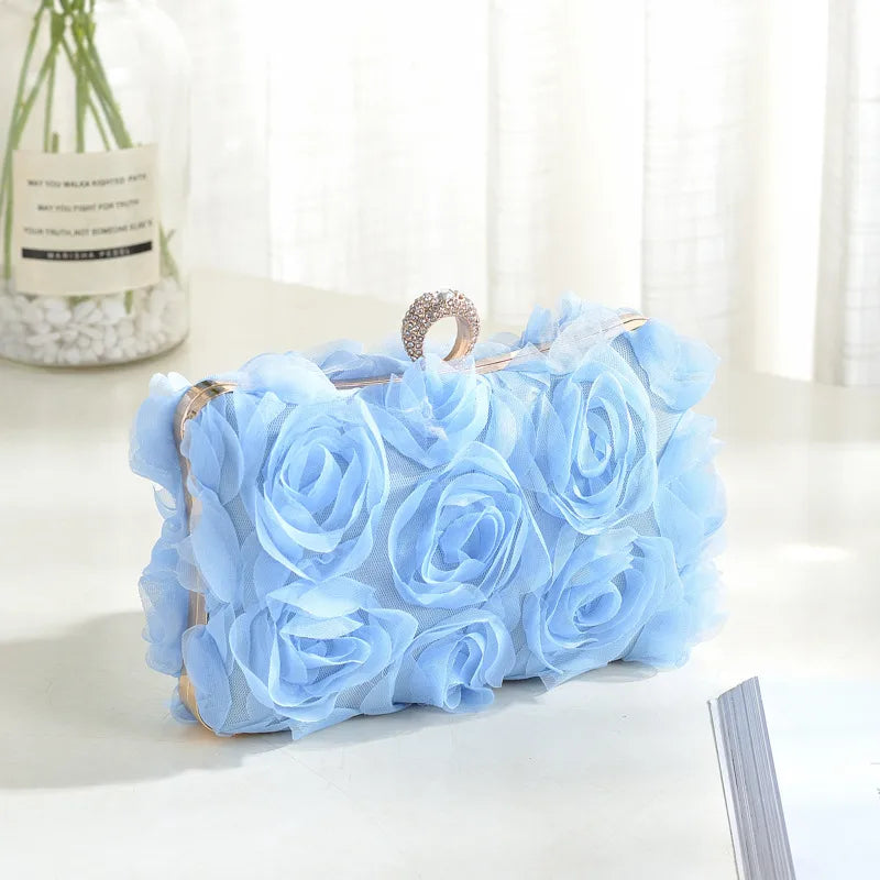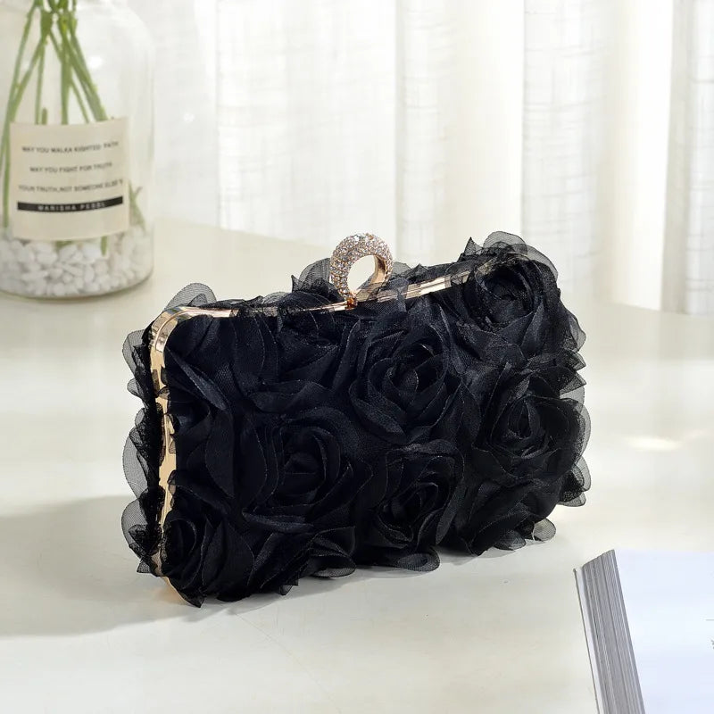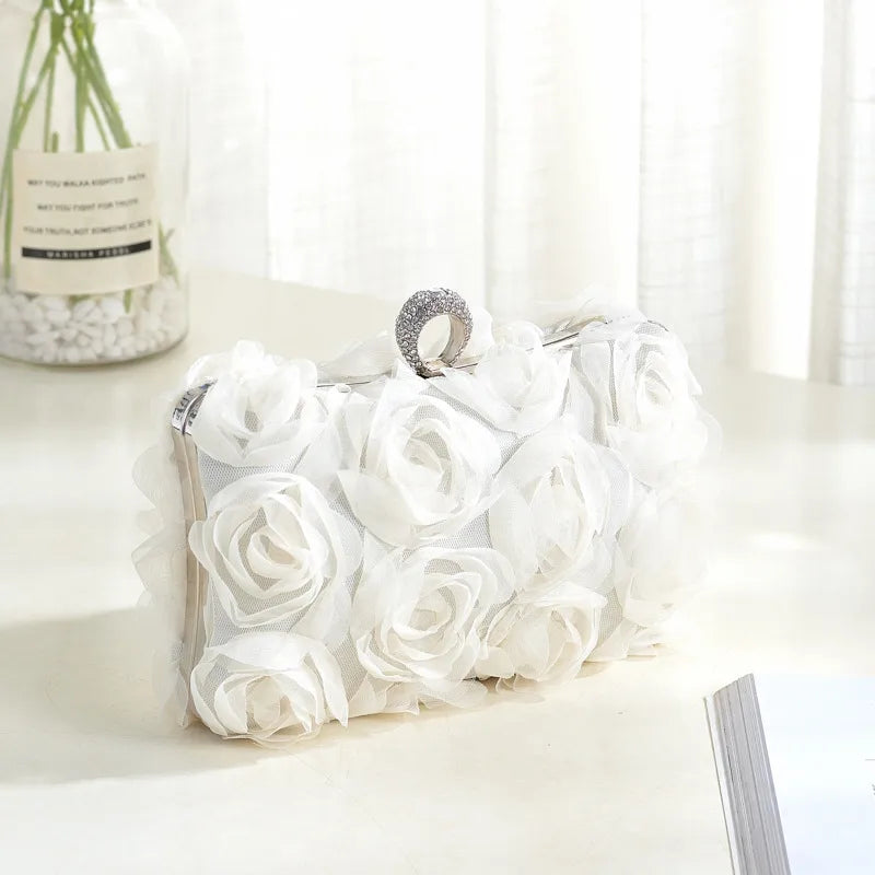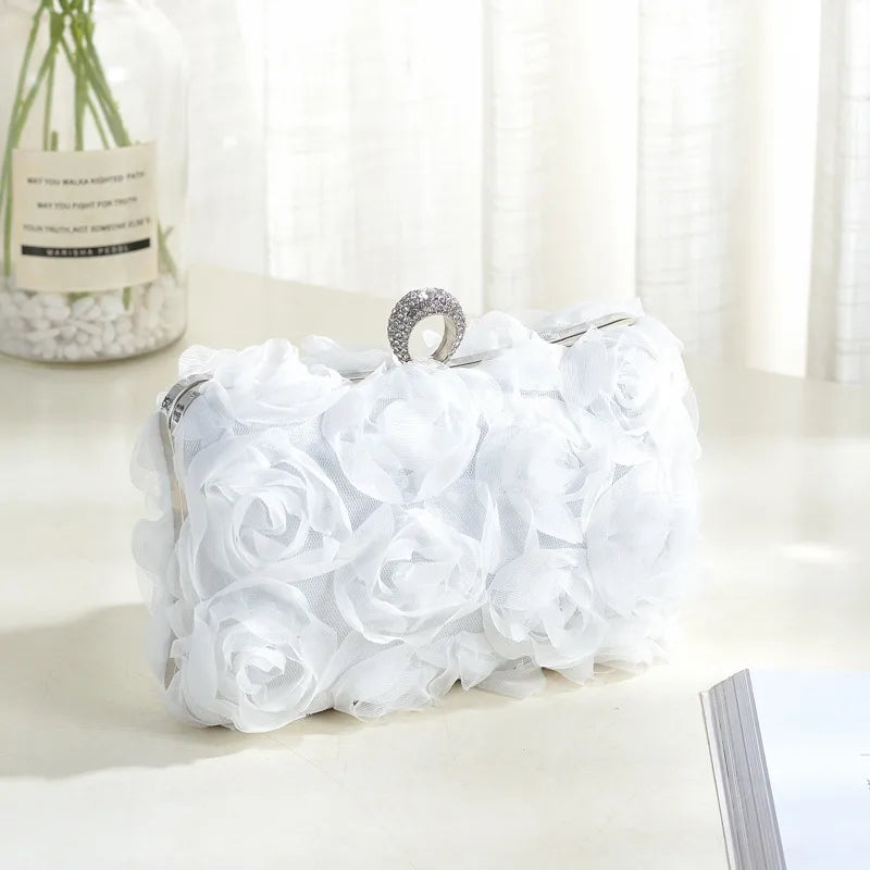 New Rose Flower Shaped Wedding Handbag Fashionable Evening Clutch Bag Nightclub Dress Bag Silk Square Handbag Fresh Sweet Style