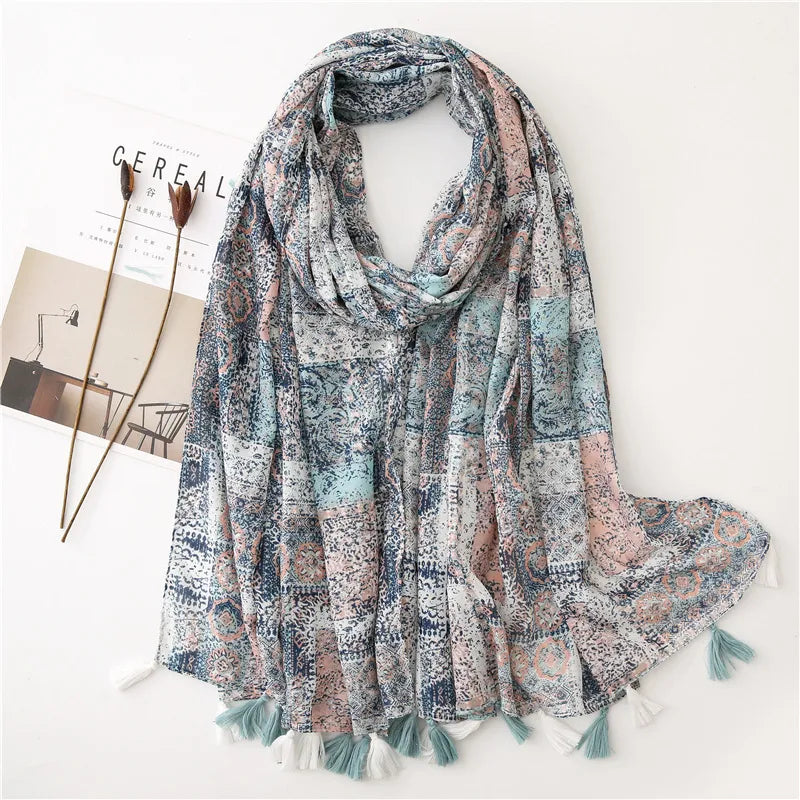 new scarf retro stitching bohemian cashew print silk scarf sunscreen yiwu wholesales