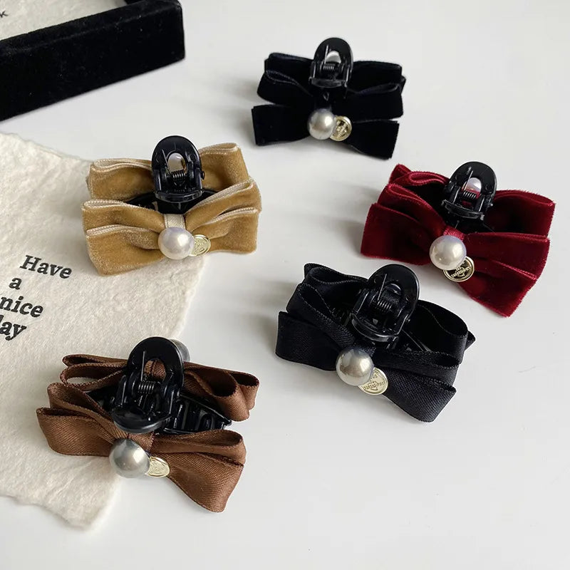 New Style Black Butterfly Knot Pearl Hair Clip Women's New Side Bangs Clamp Hair Accessories Princess Hair Clamp