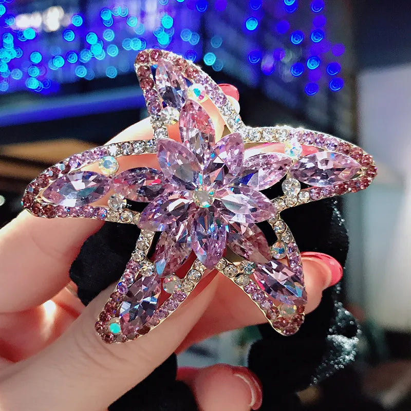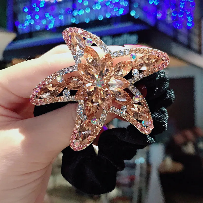 New Style Gold Velvet High-Grade Hair Ring Alloy Starfish Rhinestone High Elastic Hair Tie Bun Large Large Intestine Hair Ring