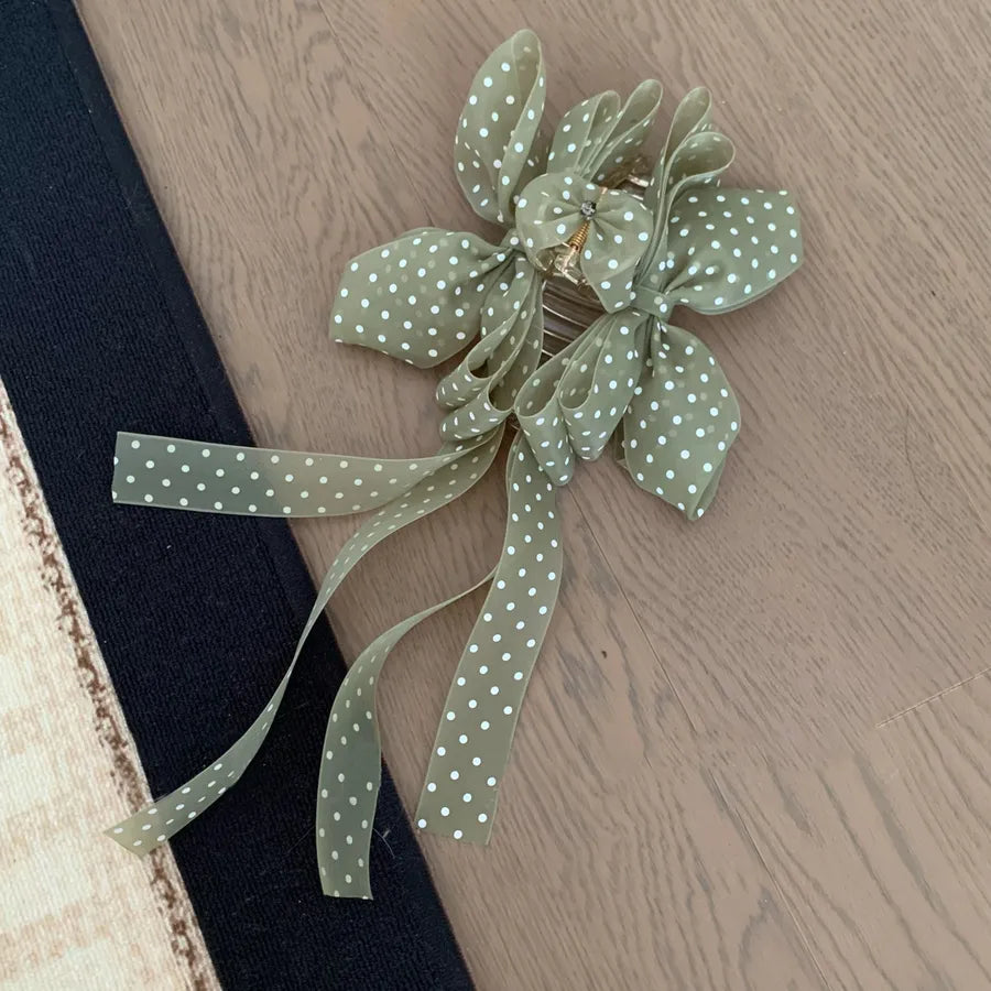 New Style Polka Dot Sash Hair Clip Fairy Wind Half Updo Shark Clamp Hair Accessories Women's Fashion Hair Grips