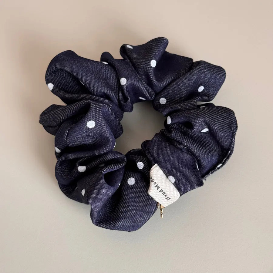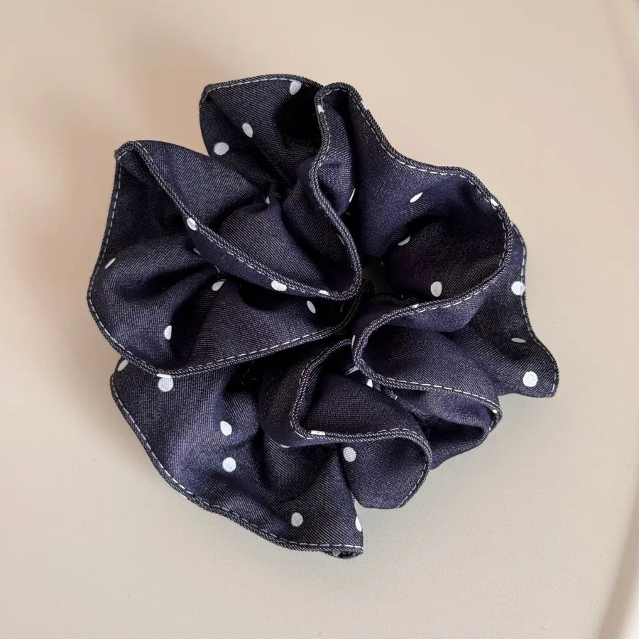 New Style Premium Dark Blue Polka Dot Folded Denim Hair Ties Elegantly Designed Square Scarf Hair Bands Versatile Lazy Knots