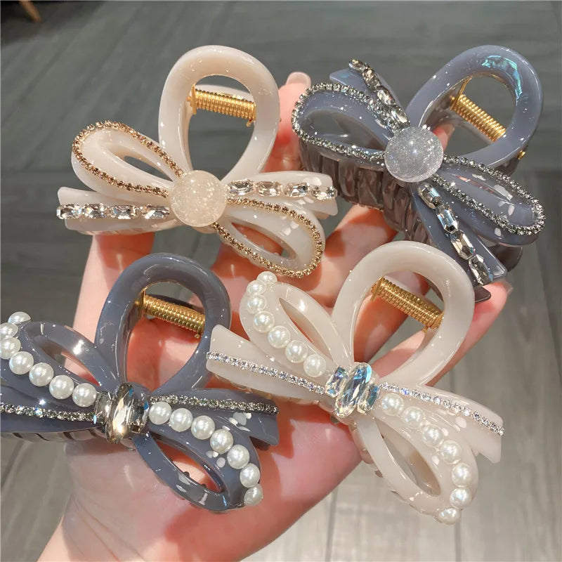 New Style Rhinestone Butterfly Knot Hair Clip Women Elegant Sweet Fairy Feel Half Updo Shark Jaw Clip Hair Accessory