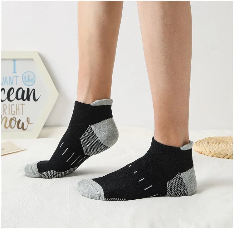 New Towel Bottom Men's Short Socks Sports Socks Thickened Sweat Absorbing Short Socks Black and White Autumn and Winter Cotton Socks