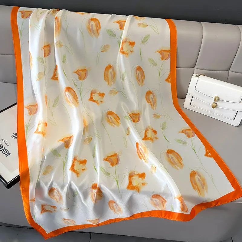 New Tulip Flower Silk Beach Towel Women's High-end Gift Summer Sun Protection Neck Protection