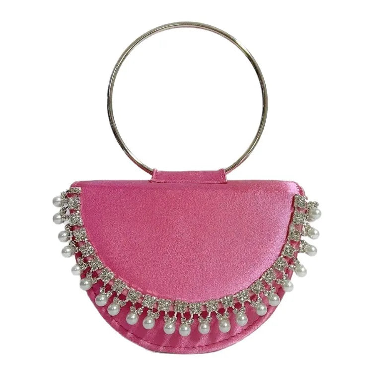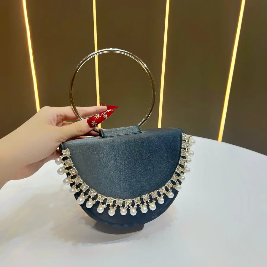 New Women's Round Ring Clutch Bag Rhinestone Evening Handbag Small Red Book Handbag Water Diamond Bags Fashion Elements