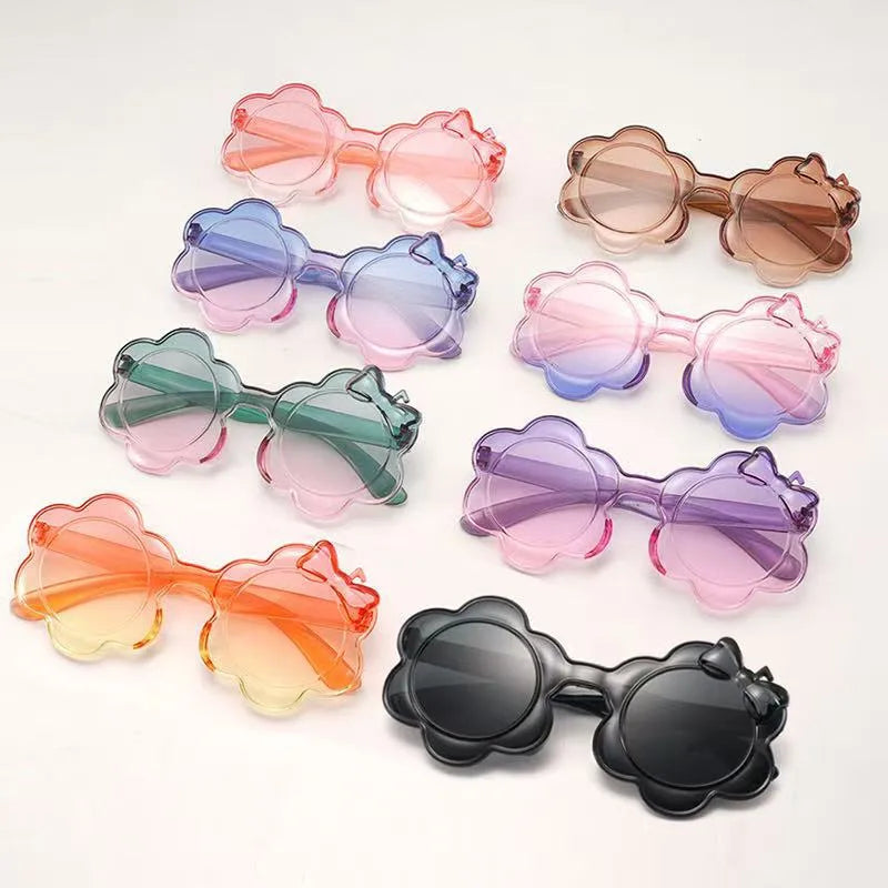 One-Piece Colorful Kidsren's Sunglasses Round Frame Kidsren's Bow Glasses Sun Protection Baby Sunflower Sunglasses