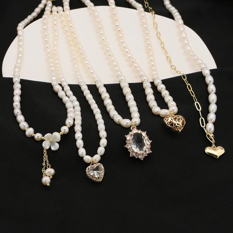 original design heart shape flower freshwater pearl plating 18k gold plated necklace
